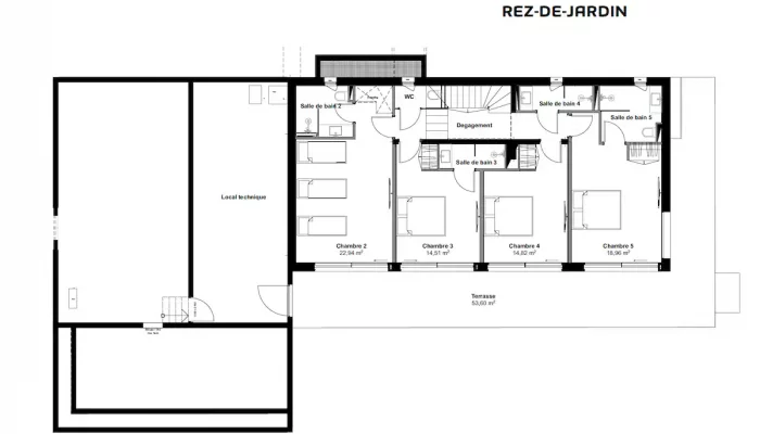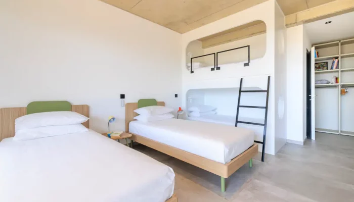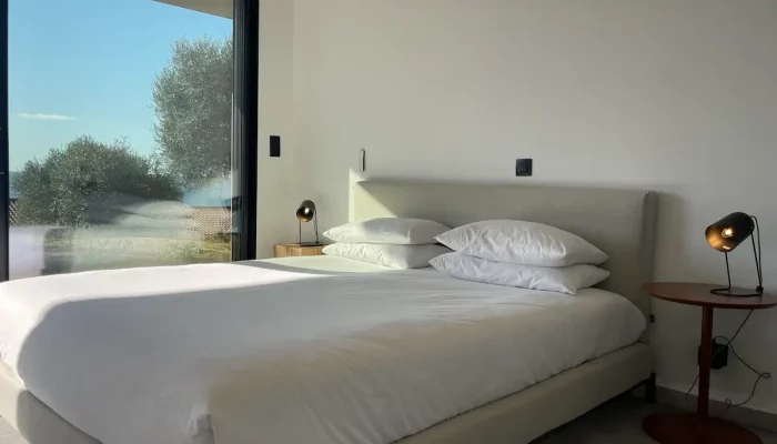 Cinq chambres avec salle de bains peuvent accueillir jusqu’à un maximum de douze personnes.